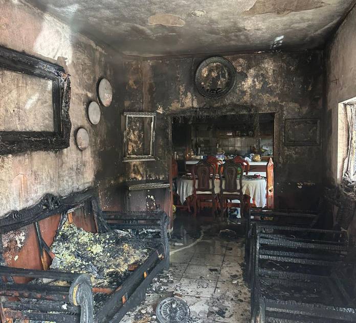 Se informó que el fuego se originó al parecer por un corto circuito en la decoración navideña, presuntamente el pino.