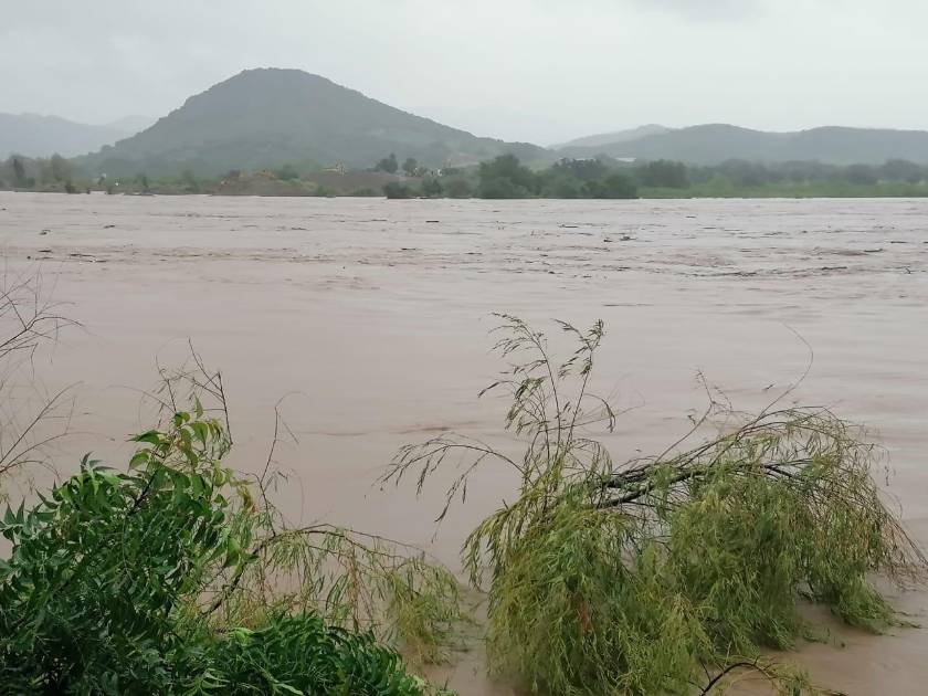 EL ROSARIO._ Al mantenerse ya por casi 17 horas las lluvias producto del huracán Nora, se presentó la creciente del río Baluarte en este municipio.