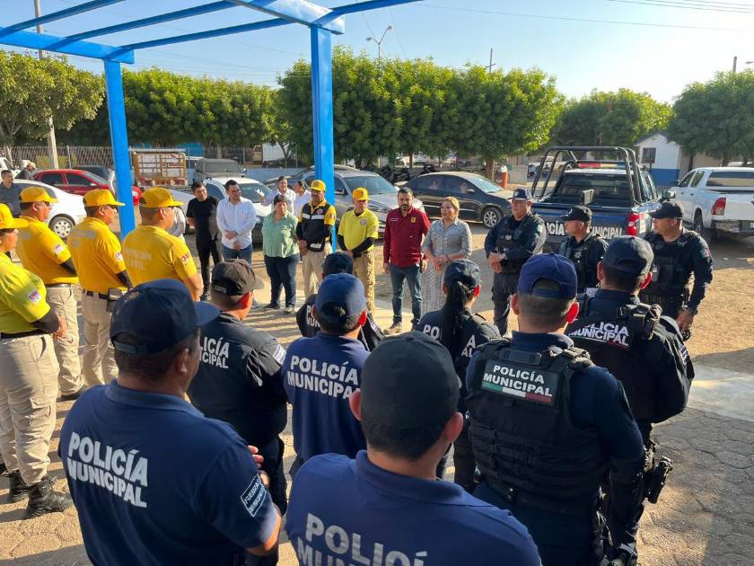 Posteriormente acudió a la formación del personal de Seguridad Pública a quienes saludó y agradeció la entrega y el compromiso de velar por la protección de los rosarenses.