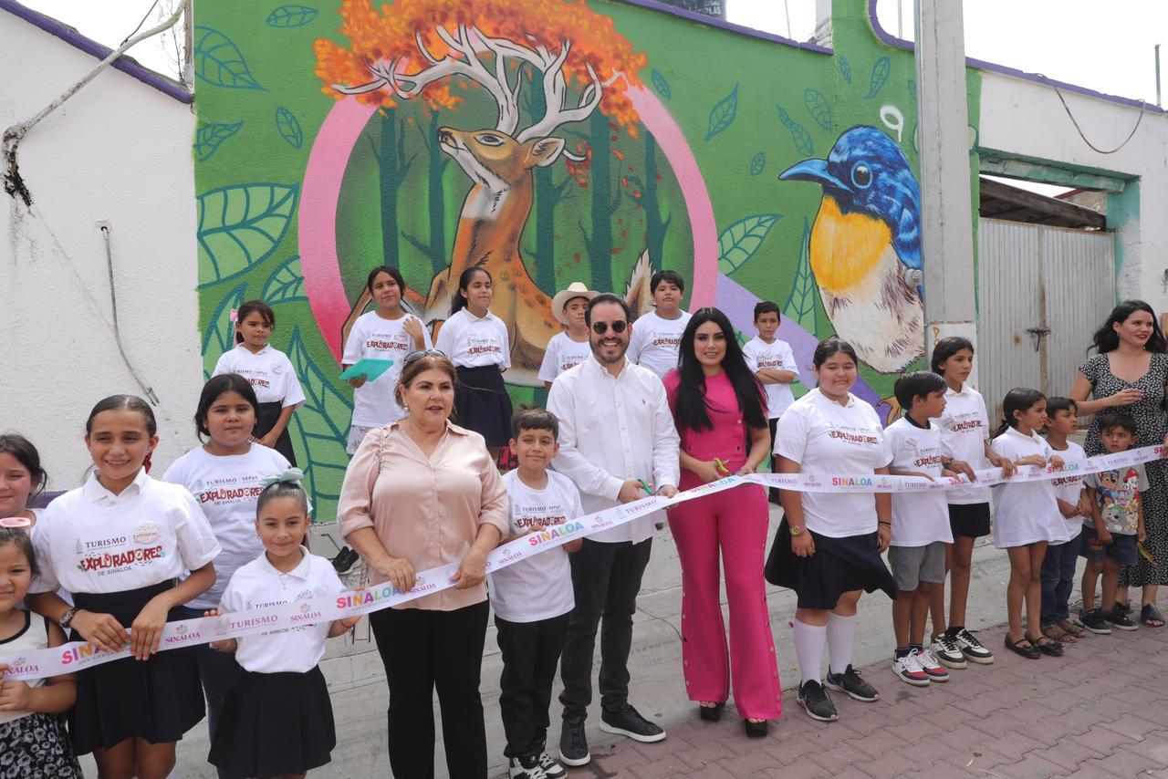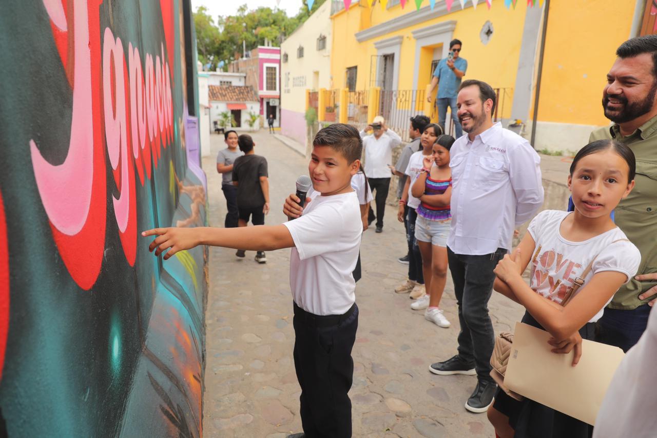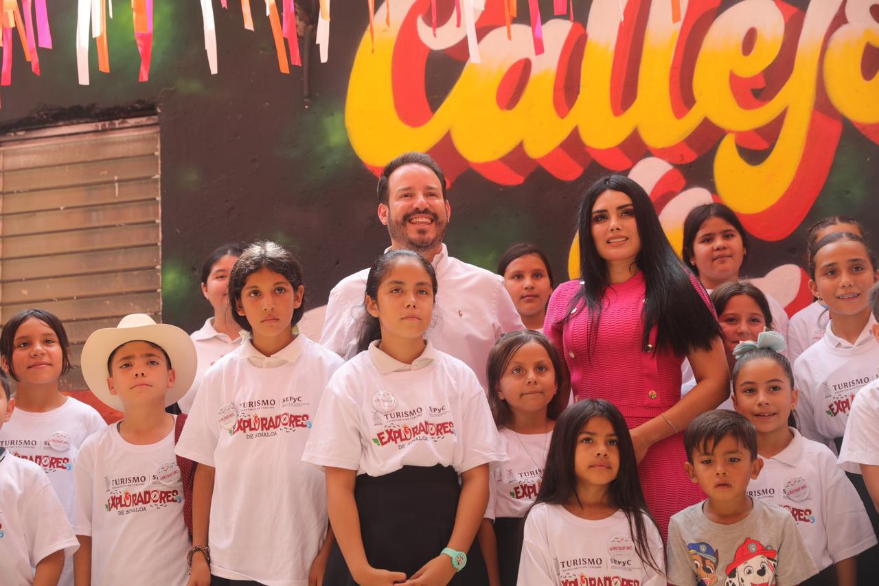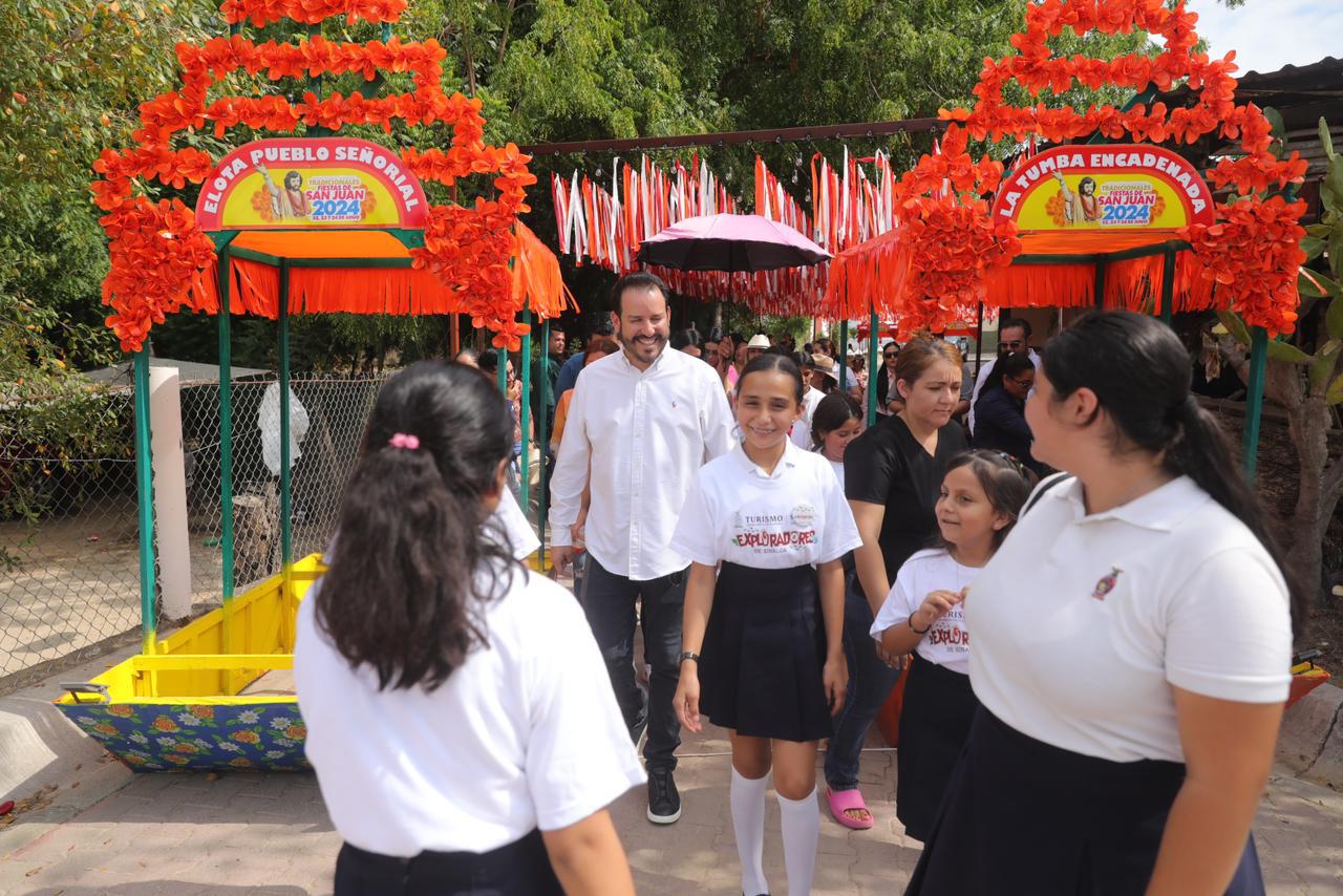 Acompañados de vecinos de esta comunidad recorrieron algunos de los sitios de interés turístico, como un callejón temático y dos murales; uno conmemorativo al día de San Juan y otro más donde niñas y niños del programa “Exploradores de Sinaloa” plasmaron otro apegado a algunas de las cotidianidades de esta población.