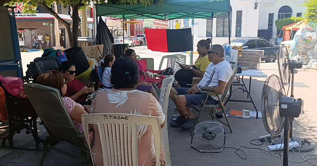 Sindicalizados arman su campamento afuera de Palacio de Escuinapa en espera del pago