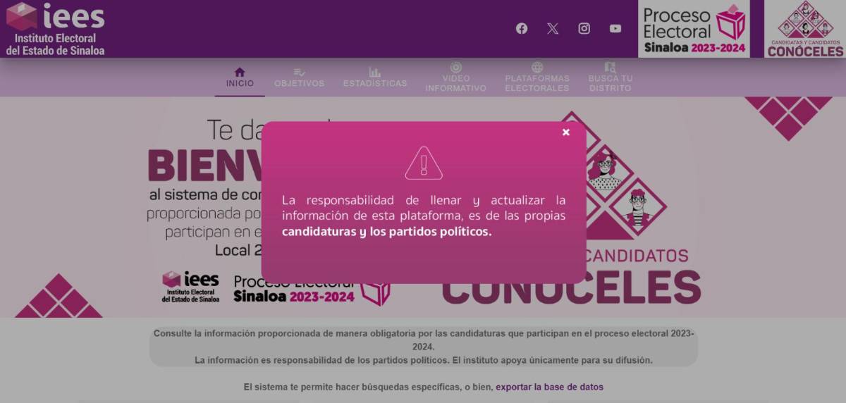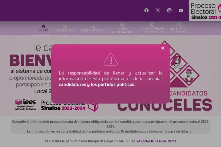 Esto en el apartado “Candidatas y candidatos, conóceles”, misma que al ingresar arroja una leyenda que precisa: “La responsabilidad de llenar y actualizar la información de esta plataforma, es de las propias candidaturas y los partidos políticos”.