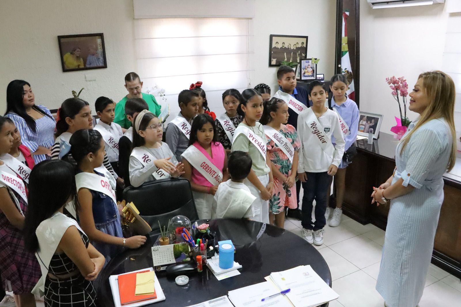 Al término de la sesión, los pequeños visitaron el despacho de Presidencia, donde cuestionaron a la primer edil sobre las funciones que realiza.