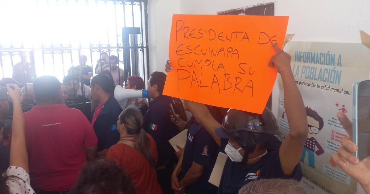 Toman policías Palacio de Escuinapa para pedir homologación de salarios