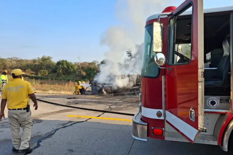 Tráiler termina incendiado sobre la autopista Tepic-Mazatlán, cerca de Rosario