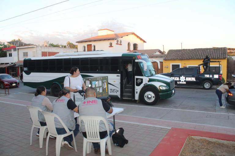 EL ROSARIO._ Luego del cierre de las casillas se inició la recolección de los paquetes electorales a las afueras de la Casa De la Cultura local para su traslado a Mazatlán.