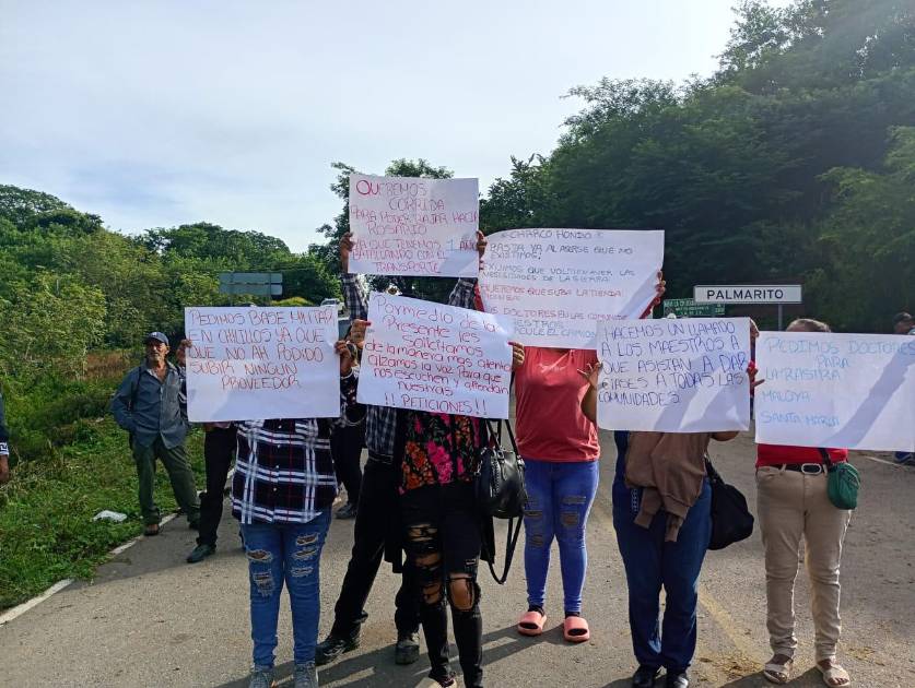 EL ROSARIO._ Vecinos de comunidades de la sierra del municipio radicalizan las medidas a la altura de la comunidad de Palmarito al exponer demandas puntuales a los tres niveles de Gobierno entre las que destacan alimentos, salud, seguridad y educación.