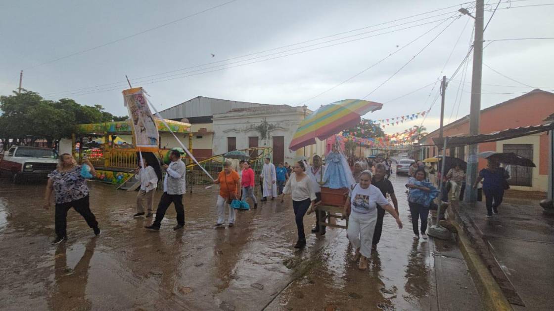 Tras la llegada de los peregrinos a las 17:00 horas una fuerte lluvia disminuyó, razón por la cual externaron que pudieron recorrer la calle principal de la sindicatura y así llegar caminando hasta el templo mariano.