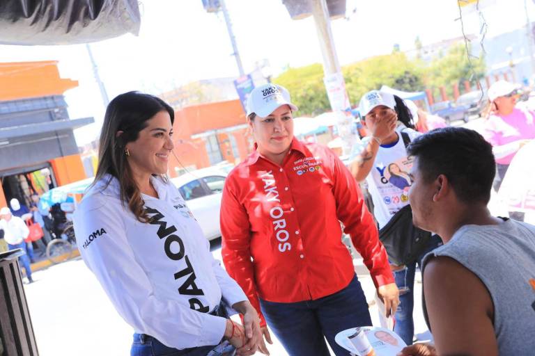 Visitan candidatas a locatarios y comerciantes del mercado municipal, en Escuinapa