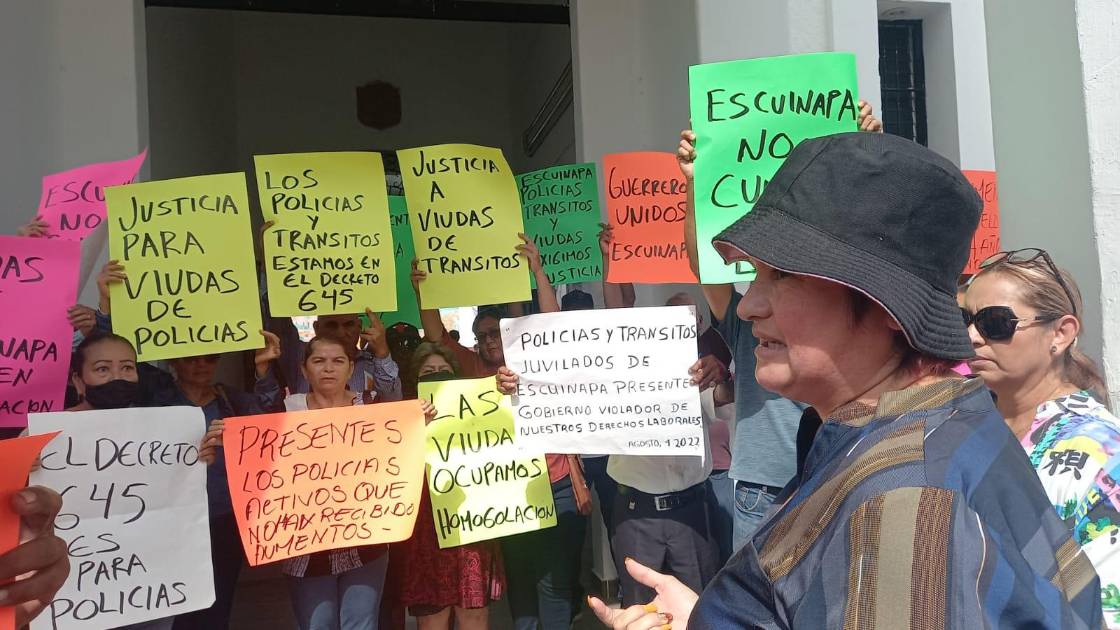 Viudas de policías y agentes jubilados exigen en Escuinapa homologación de salarios con los activos