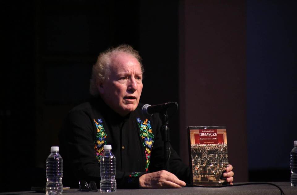 Al presentar el libro “Enrique Arturo Diemecke: Biografía con música de Mahler (Edit. Siglo XXI, 2020)”, del escritor y poeta José Ángel Leyva, recordó que, en Monterrey, donde su papá fundó la orquesta, vivían en una casita donde ensayaba el cuarteto que integraba con sus hermanos.