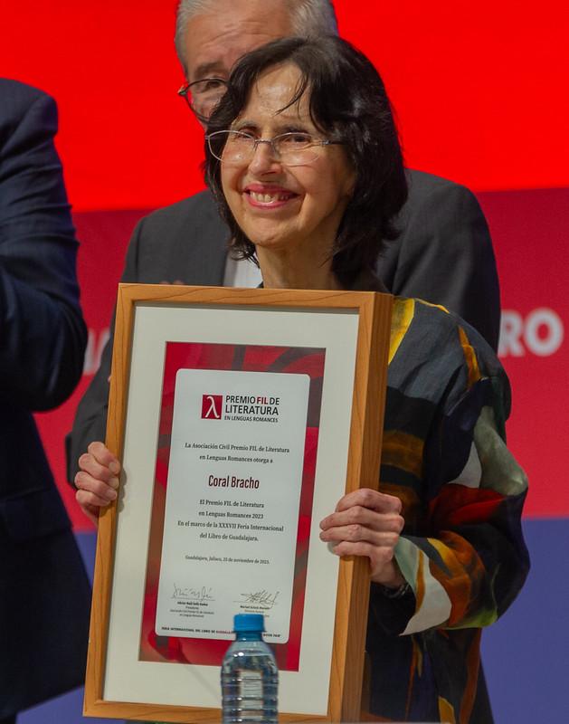 Coral Bracho recibió el Premio FIL de Literatura en Lenguas Romances 2023, “por su continuada indagación en la politicidad de la poesía, y el peso de la palabra escrita”, señaló Javier Guerrero, representante del jurado.