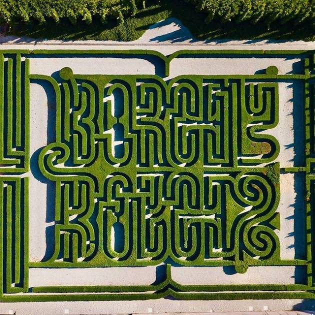 El laberinto fue construido en 2011 por la Fundación Giorgio Cini, proyectado por el arquitecto inglés Randoll Coate, quien fue amigo de Borges, y inspirado en su obra “El jardín de senderos que se bifurcan” y por un deseo de su viuda, Maria Kodama.