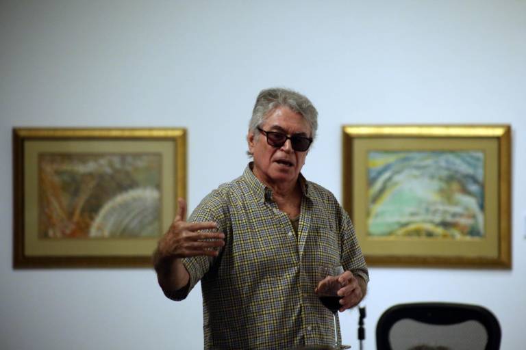 Durante la charla con un numeroso público, que le inquirió sobre diversos aspectos de la obra expuesta en esa galería, comentó que cada artista tiene su magia a la hora de crear y que, en su caso, no le es complicado hacerlo, y recordó temas difíciles como un cuadro en el que recrea el crimen de la Lomita en los años 50, cuando Culiacán se detuvo ante aquel horrendo feminicidio.