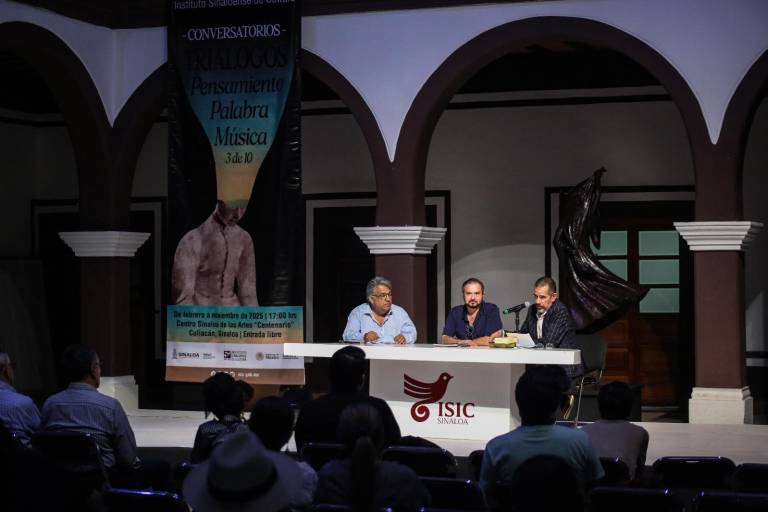 Como parte de un conversatorio del ciclo de Triálogos Pensamiento, Palabra, Música, la charla se realizó en el Centro Sinaloa de las Artes Centenario del Instituto Sinaloense de Cultura, y fue precedida por la coreografía Los sonidos del cuerpo, a cargo de la bailarina Alina Zapata, quien danzó al son de una pieza de un sugestivo jazz.