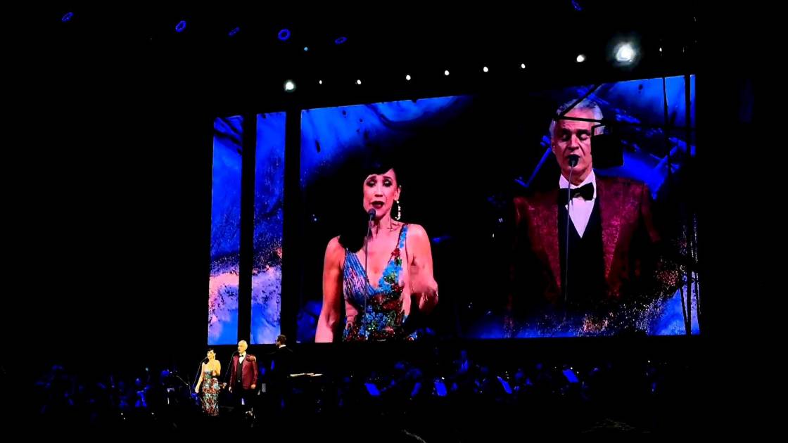 Eugene Kohn (el mismo que dirigió el concierto de Plácido Domingo en Chichén Itzá) fue el mejor de sus cómplices. Ni que decir de las actuaciones especiales como fueron las de la mexica Susana Zabaleta que engalanó con todo orgullo y dignidad su interpretación de “Contigo en la Distancia” y “Vivo por ella” al lado de Bocelli, o la participación de su hija Virginia con “Hallelujah” y hasta “Perfect Symphony”, de Ed Sheeran, interpretada junto a su hijo Matteo Bocelli, que justamente aprovechó su visita a México como parte del elenco de esta noche, para presentar su primer sencillo en español “Dime”, escrita junto al músico italiano Alessandro Mahmoud.