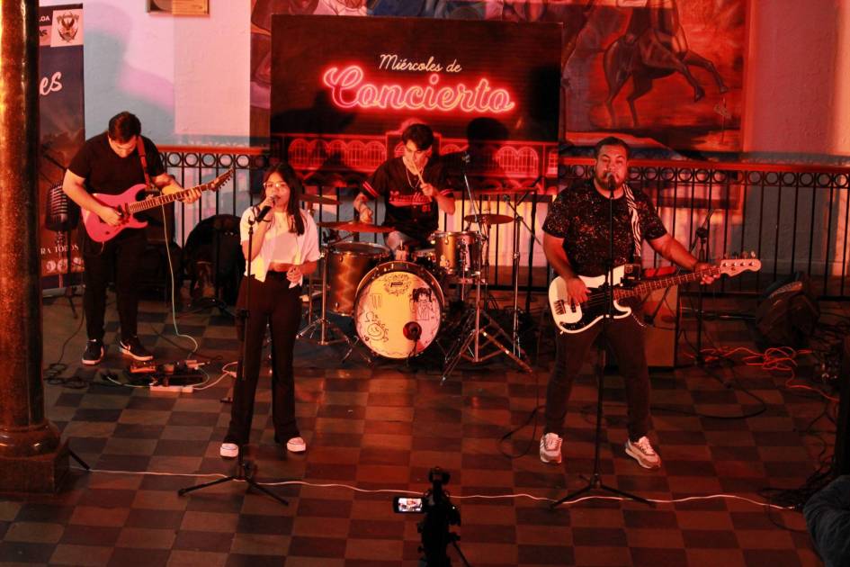 La gran energía de la banda de rock cautivó al público asistente quien aún con el intenso calor en la capital sinaloense cantaron y bailaron temas como La planta, éxito de los 90 del grupo Caos, Lamento boliviano, de Los enanitos verdes, Zombie, de The Cranberries, El sol no regresa, del grupo de origen español La Quinta Estación, entre otros, disfrutando así de una presentación más de Miércoles de Concierto.