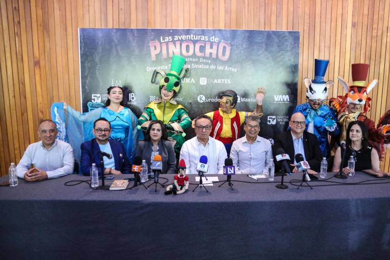 En la conferencia de prensa se contó con la presencia de parte del elenco caracterizado para la ocasión, encabezado por Oralia Castro, quien dará vida a “Pinocho”, así como los integrantes del Taller de Ópera de Sinaloa Cecilia Antelo, Evelin Tovón, Alejandro Hernández y Daniel Rodríguez.