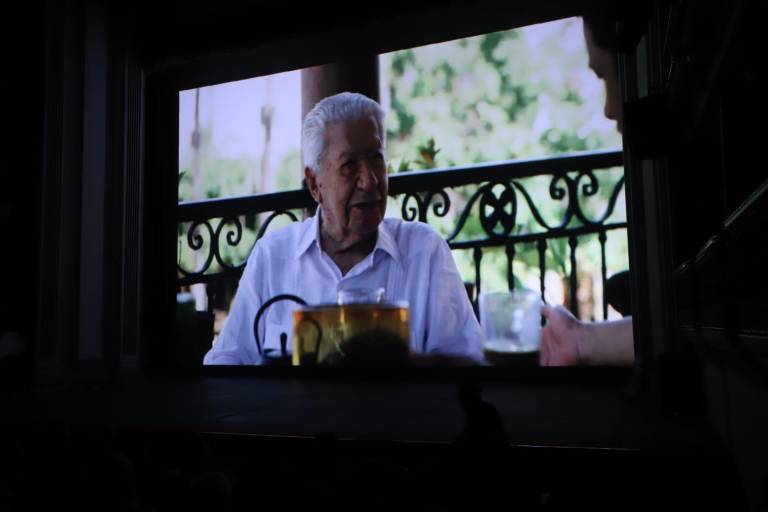 El cineasta sinaloense Alan Jonsson Gavica y la creadora del guión, y co-directora Leticia Fabián, crearon este documental que lo protagoniza Ignacio López Tarso, realizan un conversatorio en el TAP, aquí junto al escritor Juan José Rodríguez. ( ) -