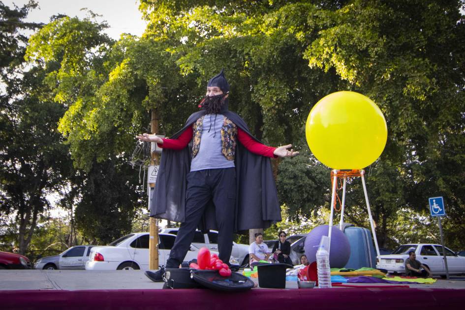 El mimo Juan Carlos Uribe ha creado una serie de personajes mágicos, como magos, clowns, jorobados, que entretienen a chicos y grandes con juegos, figurillas con globos, máscaras. Se cuela entre el público para interactuar con los papás, con los niños y genera reacciones y emociones inesperadas. Es un espectáculo lúdico para toda la familia.