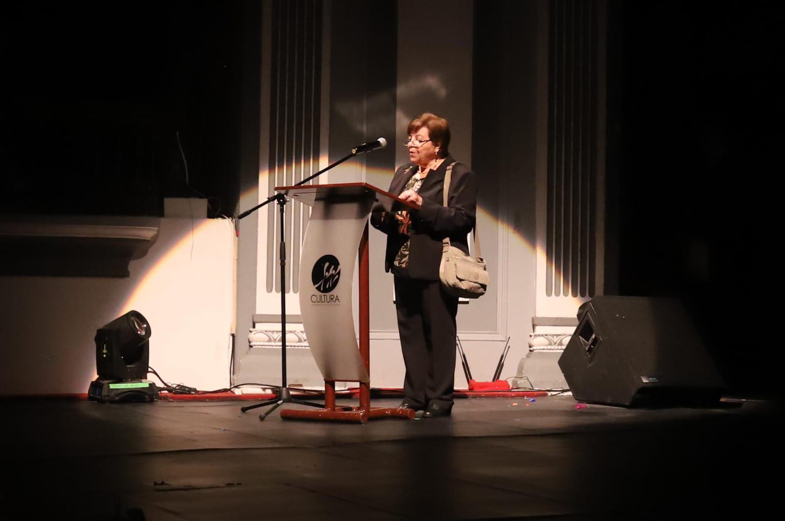 Previo al concierto la escritora Elsa Cross, Premio Mazatlán de Literatura 2024 por su obra “Isla Negra”, recibió de manos del Alcalde Édgar González Zataráin, su galardón, en tanto que de manos de Iván Tostado Ramírez, vicerrector de la UAS en la Zona Sur, recibió un premio económico de 100 mil pesos aportados por la UAS como estímulo a su actividad creadora en el mundo de las letras.