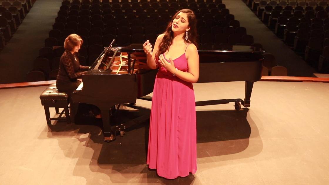 En primer término, a las 17:00 horas, se presenta la soprano Lucía Beyles, con el aria “Signore Ascolta”, de la ópera “Turandot”, de Giacomo Puccini), acompañada al piano por la Mtra. Zlatina Valkova.