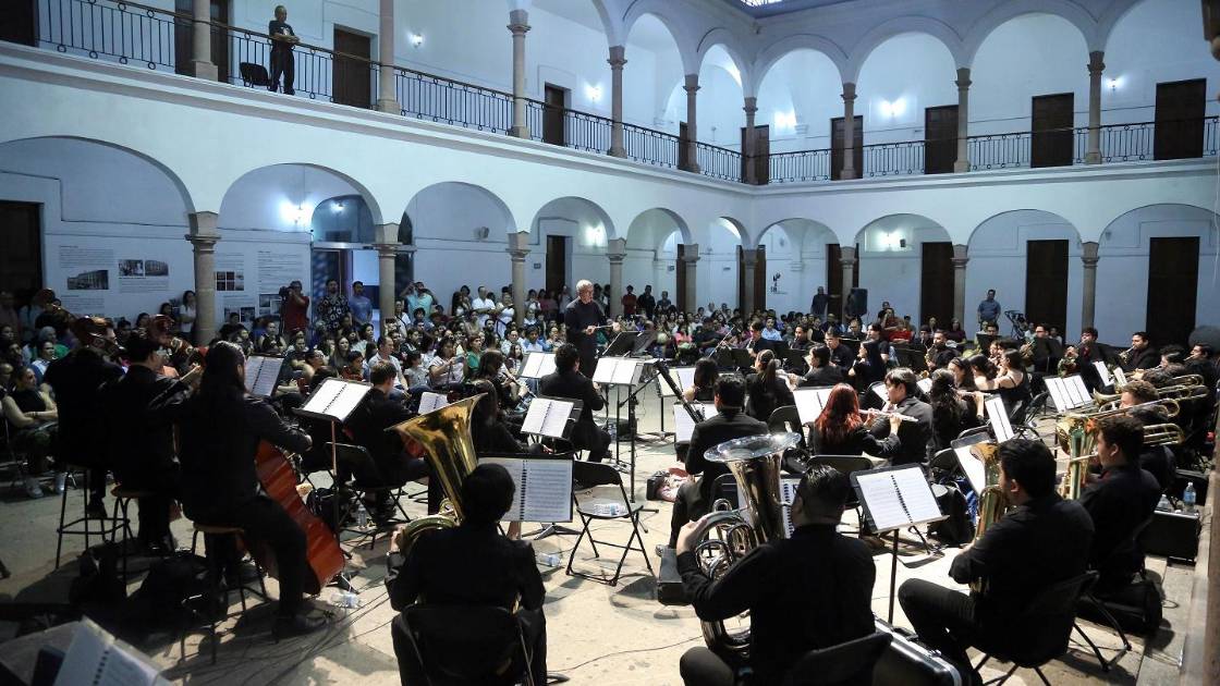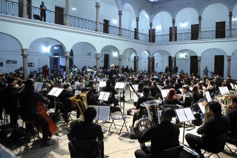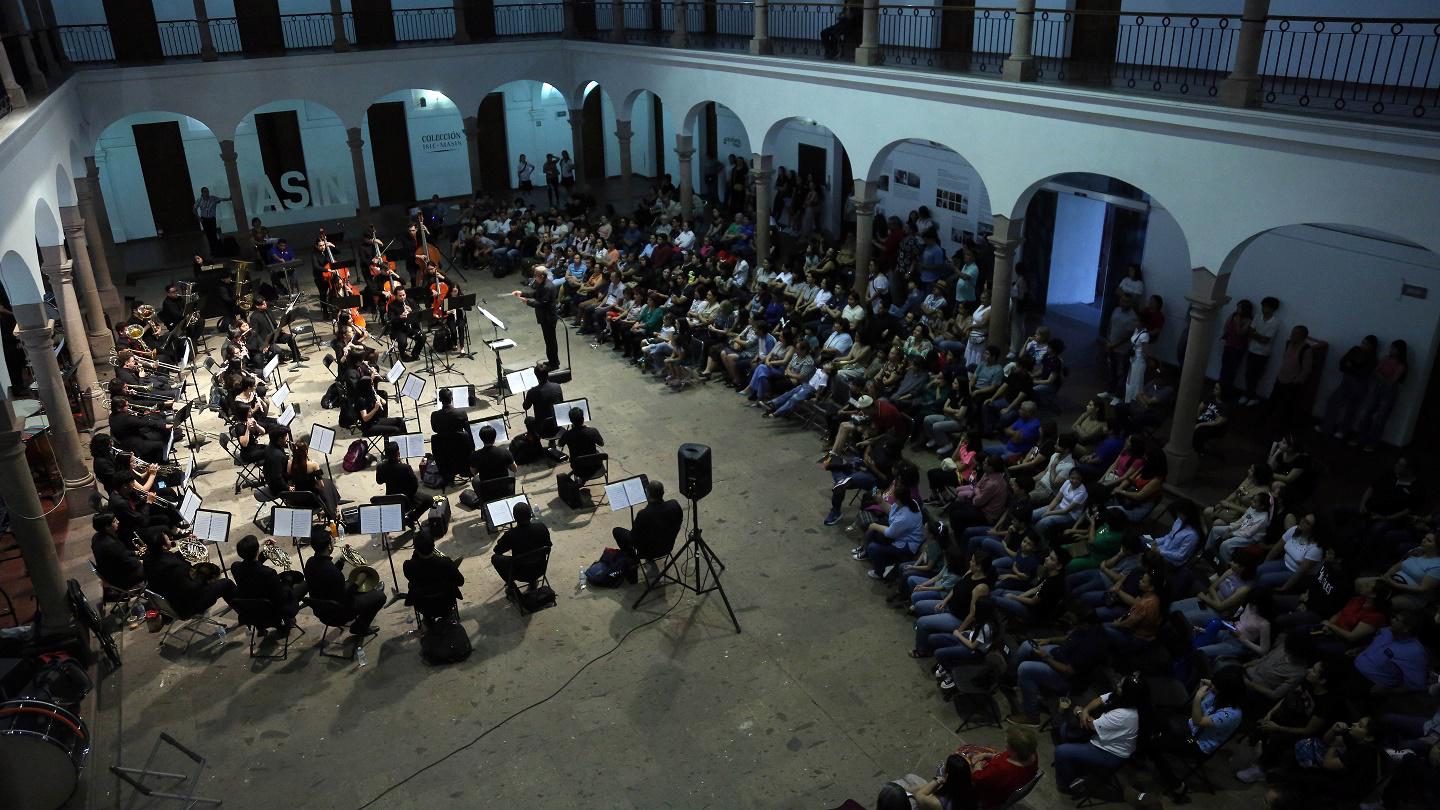 La Banda, perteneciente al Instituto Sinaloense de Cultura e integrada por alumnos de la Escuela Superior de Música del ISIC, ofreció un programa novedoso, con piezas que no formaban parte de su repertorio y con los que cosechó los aplausos del público que llenó el inmueble.