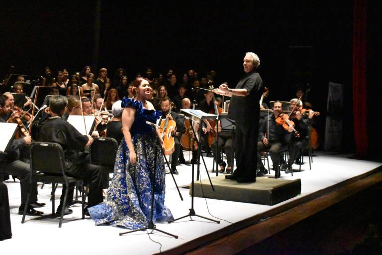 Iniciaron con la “Danza bacanal”, de la ópera “Sansón y Dalila”, de Camille Saint-Saëns, una danza icónica que refleja las celebraciones griegas, para luego acompañar a la mezzosoprano Rose Ferreiro, en el aria “Cruda sorte”, de la ópera “La italiana en Argel”, de Gioachino Rossini.