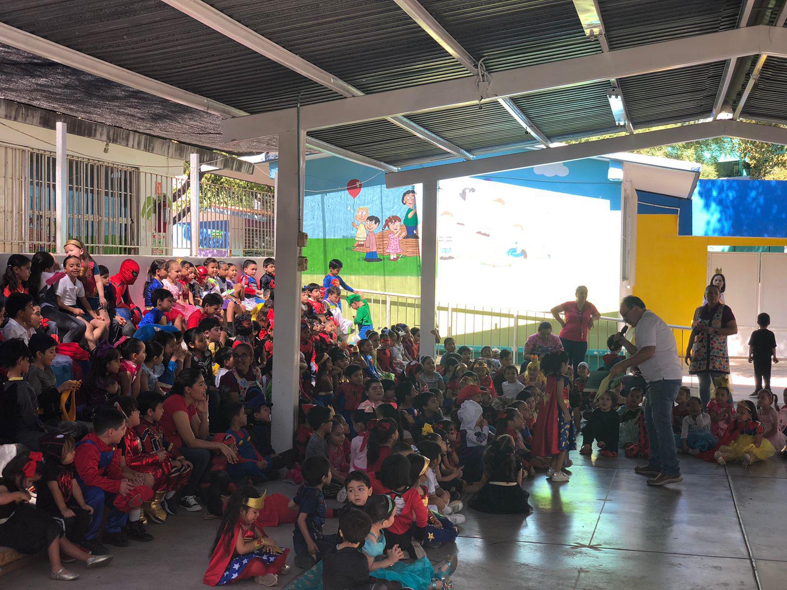 René Arellano narró en el Kínder de SEPyC y dictó conferencia en torno al día del libro en el CEDI de Aguaruto una conferencia en torno a la celebración.