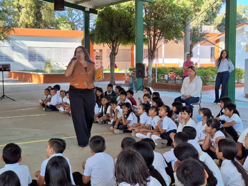 Arely López abrió círculos de lectura en San Miguel Zapotitlán, Ahome y Alfonso Flores efectuó una contada de cuentos en la secundaria Insurgentes en Culiacán.