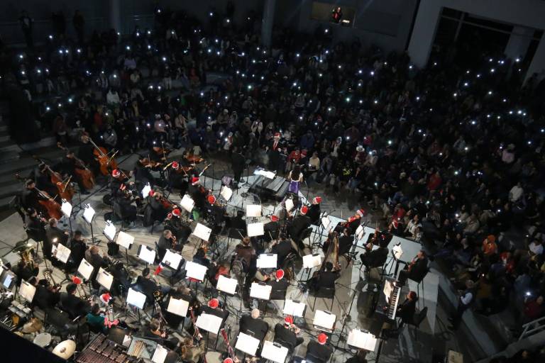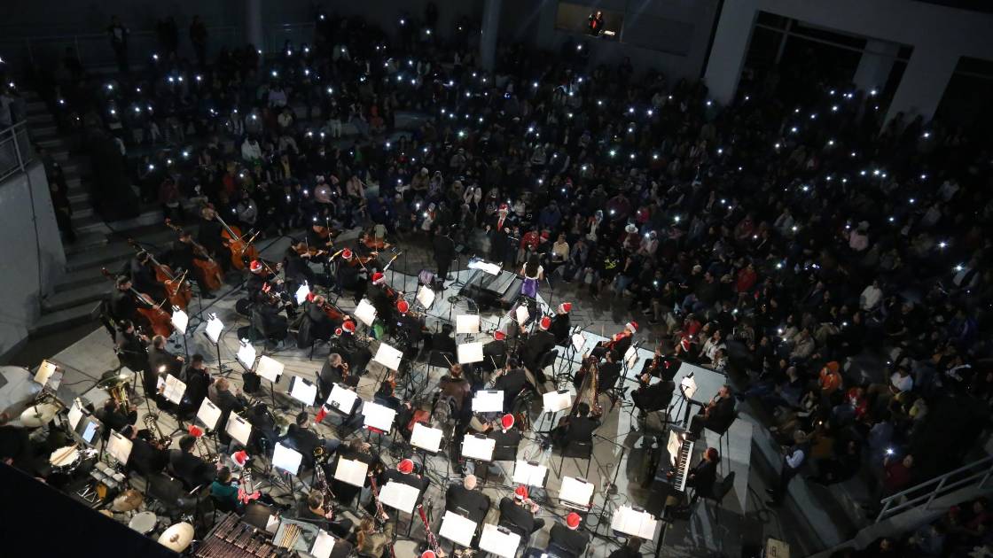 En el ágora Rosario Castellanos completamente llena, familias completas, parejas, jóvenes, padres y mamás con sus pequeños disfrutaron de un recorrido por la música navideña de diferentes países del mundo, en un concierto dirigido por el maestro Miguel Salmón del Real.