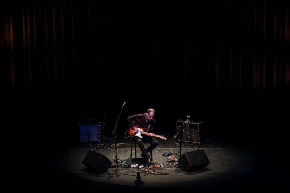 El guitarrista, compositor, arreglista y productor de origen argentino, naturalizado mexicano, subió al escenario del teatro Socorro Astol, para crear secuencias únicas de sonidos surgidos en complicidad con la audiencia.
