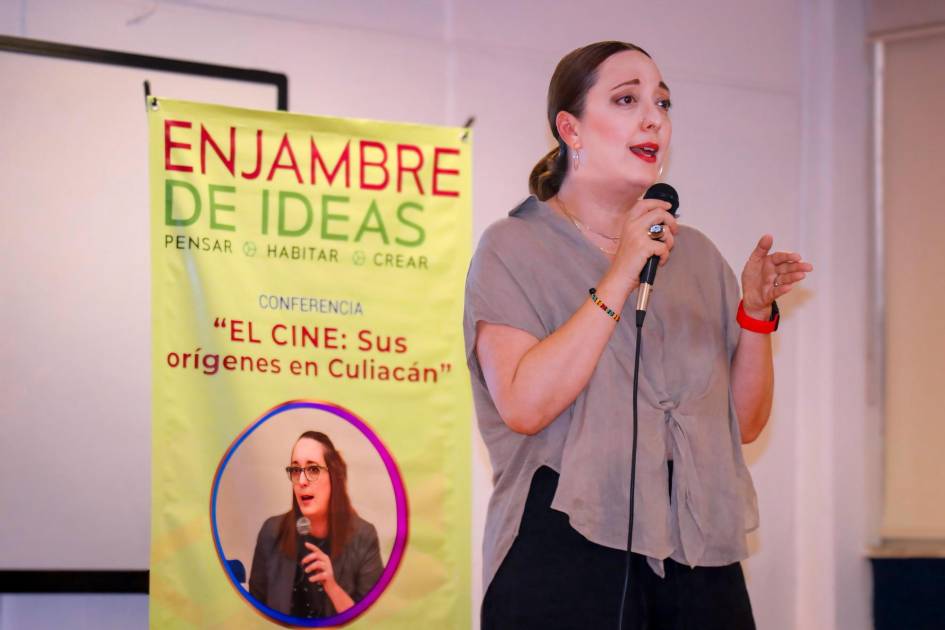 Rivas Coronel es Maestra y Doctorante en Historia por la Universidad Autónoma de Sinaloa, y fue invitada por el Instituto Municipal de Cultura Culiacán participó con la conferencia “El cine: sus orígenes en Culiacán” para estudiantes de preparatoria del CBTIS 224, como parte del programa Enjambre de ideas.
