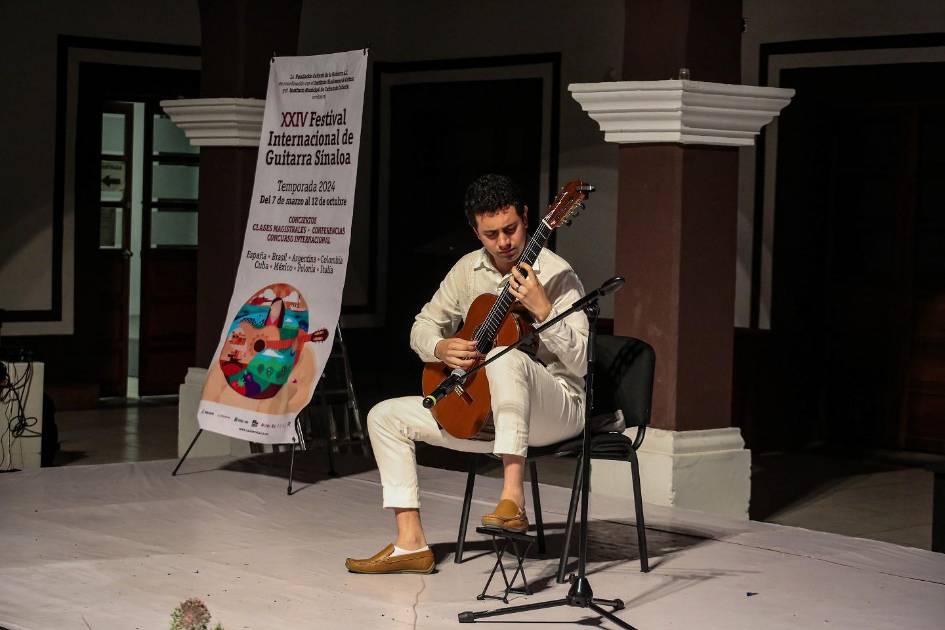 Obras de autores desde el barroco con adaptaciones para guitarra, compartió el colombiano Carlos Bedoya, durante el 24 Festival Internacional de la Guitarra Sinaloa 2024.
