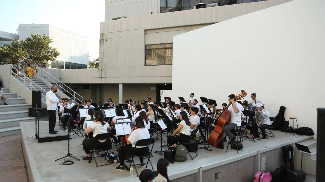 Bajo la dirección del maestro Baltazar Hernández Cano, los alumnos de la Escuela Superior de Música del Isic abrieron la cálida tardeada con la pieza Obertura Mexicana, con música popular con arreglos de Merle John Isaac, a la cual siguió el famoso danzón Nereidas, de Amador Pérez Torres.