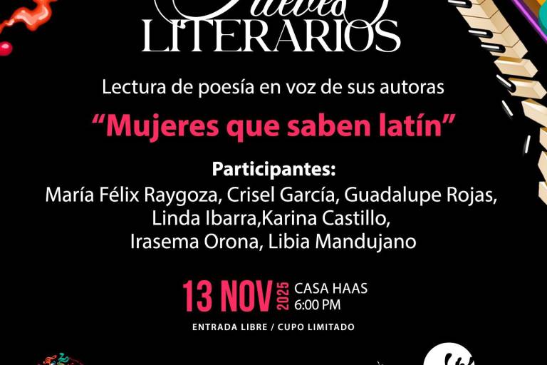 Se trata del programa “Mujeres que saben latín”, en una edición más del Jueves Literario, que reunirá a mujeres poetas para dar voz a sus creaciones más íntimas y poderosas.