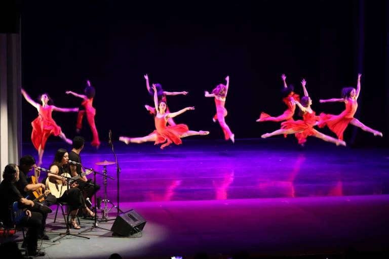 El Teatro Ángela Peralta fue el escenario donde recibieron a la activista guatemalteca, en el cual integrantes del Ballet Clásico del Centro Municipal de Artes hicieron dos intervenciones con la música del piano de Juan Pablo García y el violín de Víctor Osuna.