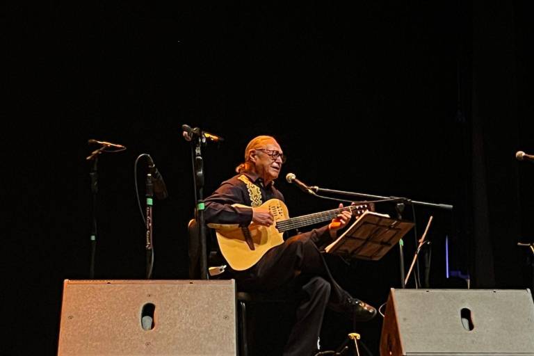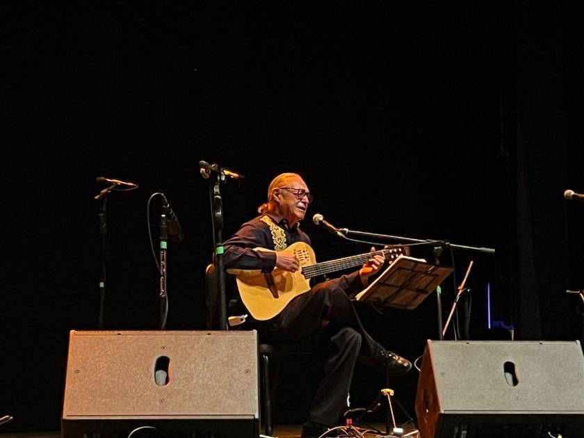 Gabino Palomares, compadre y amigo de la cantante sinaloense, cerró el maratón de presentaciones con canciones de su autoría como “Sólo le pido a Dios”, “Campamentos”, “Historia cotidiana”, “Macondo”, “Hermosísimo lucero” (que no es la de Cuco Sánchez sino una que le hizo a Amparo a raíz de su muerte y aludiendo a la primera canción que cantó la intérprete).