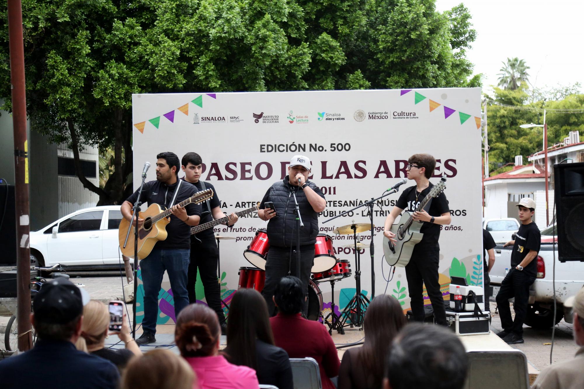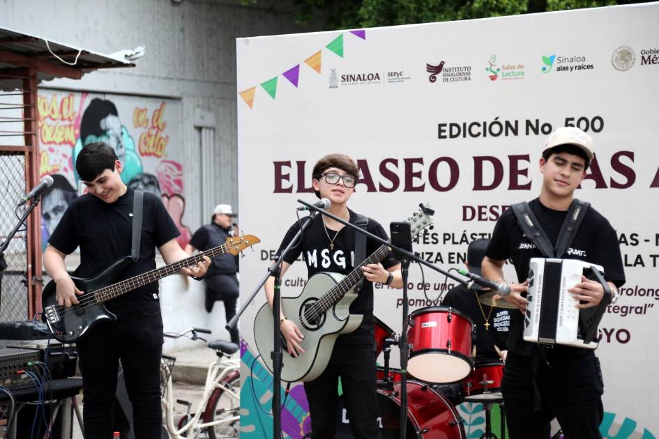 Además de la exposición y venta artesanal y gastronómica, las trivias de libros donados por los programas Salas de Lectura y de Alas y Raíces Sinaloa, del ISIC, y el tradicional Desfile de poetas, en el escenario semanal se presentó un espectáculo musical desde temprano.