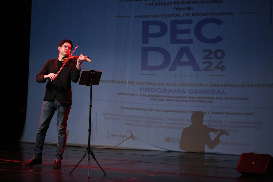 Dentro de la Muestra Estatal de Beneficiarios Pecdas 2024, se llevaron a cabo dos actividades presenciales en la disciplina de música, con la presentación de los proyectos Vibraciones Latinoamericanas: Repertorio para vibráfono de compositores latinoamericanos, a cargo del maestro Edmundo Langner Romero (Creadores con Trayectoria), y Reviviendo el romance a través de mi violín, a cargo de Alfonso Sánchez Félix (Jóvenes Creadores).