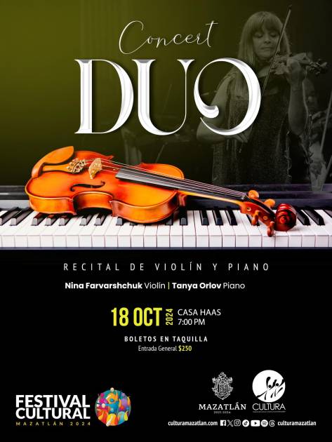 Un recital con obras maestras de músicos clásicos ofrecerá Concert Duo, integrado por la violinista ucraniana Nina Farvarshchuk y la pianista rusa Tanya Orloy, el viernes 18 de octubre, a las 19:00 horas, en Casa Haas.