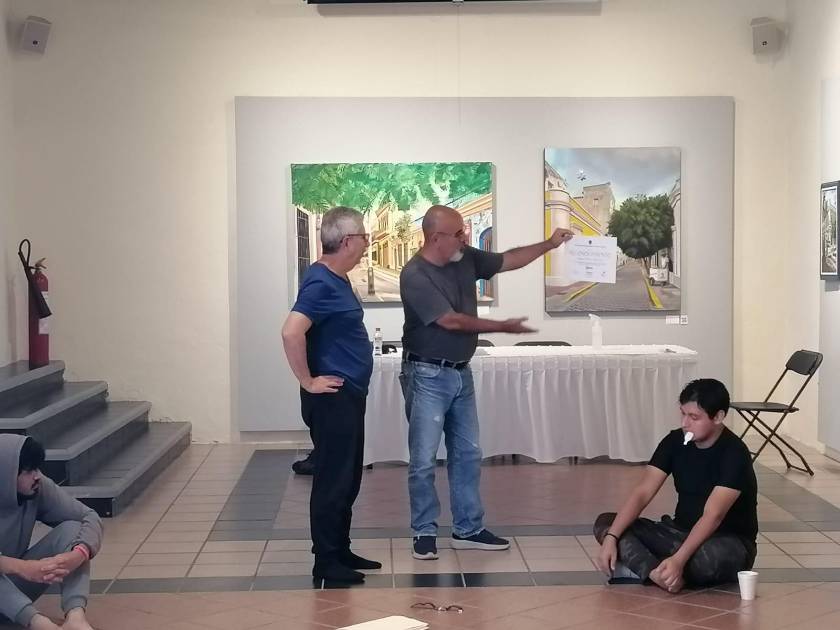 Fueron más de 15 horas intensas de métodos, exploración e innovación impartidos en la Galería Ángela Peralta donde el docente y alumnado trabajaron en la creación y perfeccionamiento de diferentes tipos de personajes, abordando la seriedad en algunos casos, hasta llegar a lo exagerado, ridículo, para lograr resultados gratificantes.