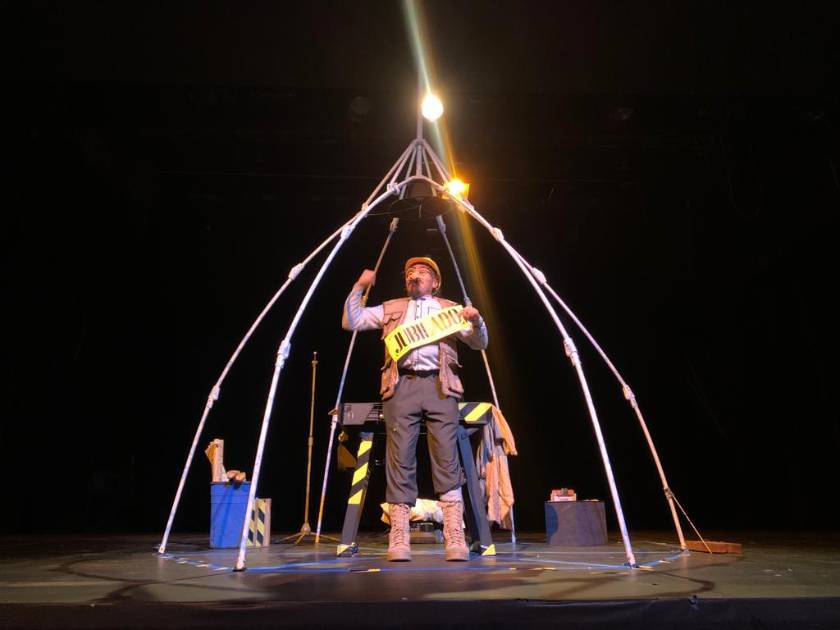 Por espacio de 45 minutos, en un ir y venir en el escenario, con señas, gestos, y diversas acciones, el protagonista de la historia comienza a ordenar sus viejas pertenencias, sus memorias, su trabajo como constructor de puentes y aventuras nunca emprendidas que le dan una luz de esperanza y lo hacen bailar de alegría con la posibilidad de emprender un nuevo camino en esta nueva etapa de su vida.