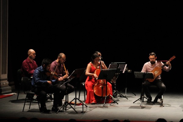 La atmósfera sonora novohispana se instaló en el Teatro Ángela Peralta, la conquista en 1520 llegó a México no solo con armas y violencia, también los espíritus fueron seducidos con música, pintura, teatro y escultura, una muestra de la música cargada de alegría y humor con la que se consiguió la conquista de México se interpretó en el foro porteño y consiguió adueñarse de los espíritus de los patasaladas del Siglo 21 que asistieron al concierto que ofreció el grupo de música Antiqvua Metrópoli.