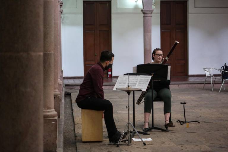 La fagotista estadounidense Carly Gómez y el percusionista sinaloense Luis Alejandro Inda dieron la bienvenida y explicaron el programa.