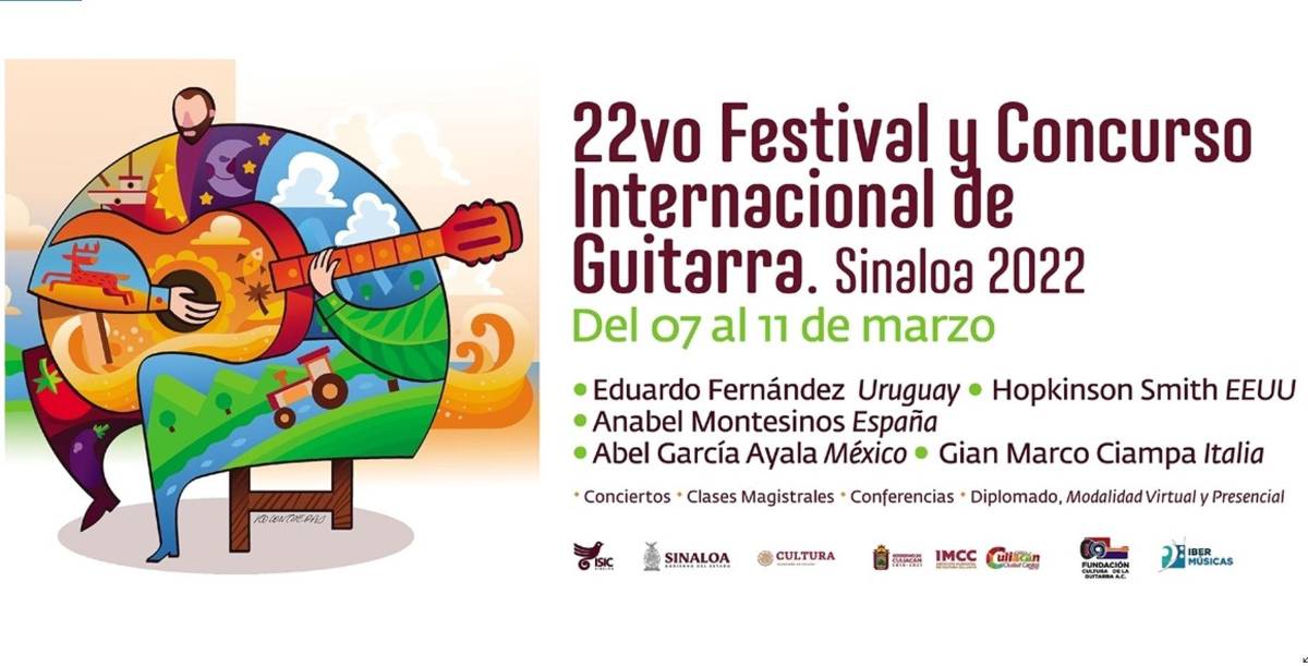 La Fundación Cultural de la Guitarra A.C., en coordinación con el Ayuntamiento de Culiacán y el Instituto Sinaloense de Cultura, convocan al Concurso Internacional de Guitarra Clásica Culiacán 2022, que se llevará a cabo de manera virtual los días 17 y 18 de febrero y 11 de marzo de 2022.