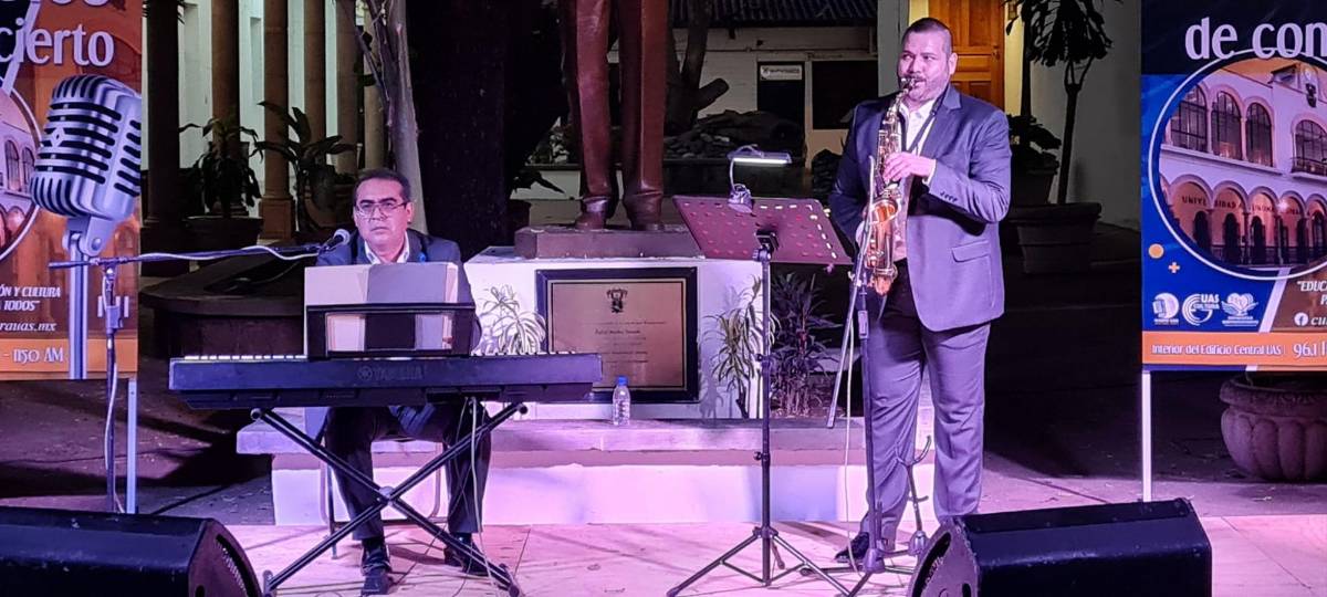 Una velada llena de romanticismo, nostalgia y un viaje alrededor del mundo se vivió en el interior del recinto universitario durante el programa Miércoles de Concierto, con la presentación del espectáculo que ofreció Café para dos, donde Ramón y Adrián Meza, interpretaron con el piano y el saxofón alto, música de todos los tiempos.