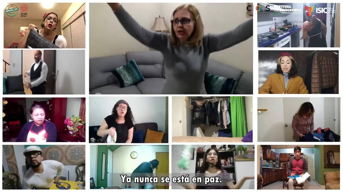 Sacudir, cocinar, doblar y colgar ropa, barrer, trapear, tender camas, acomodar cortinas, hornear, representan los integrantes del coro que dirige Marco Antonio Rodríguez, en una producción especial del Festival de Primavera que organiza el Instituto Sinaloense de Cultura.