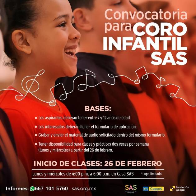 A todos los niños entre 7 y 12 años con interés en el canto, la Sociedad Artística Sinaloense los invita a formar parte del Coro Infantil.