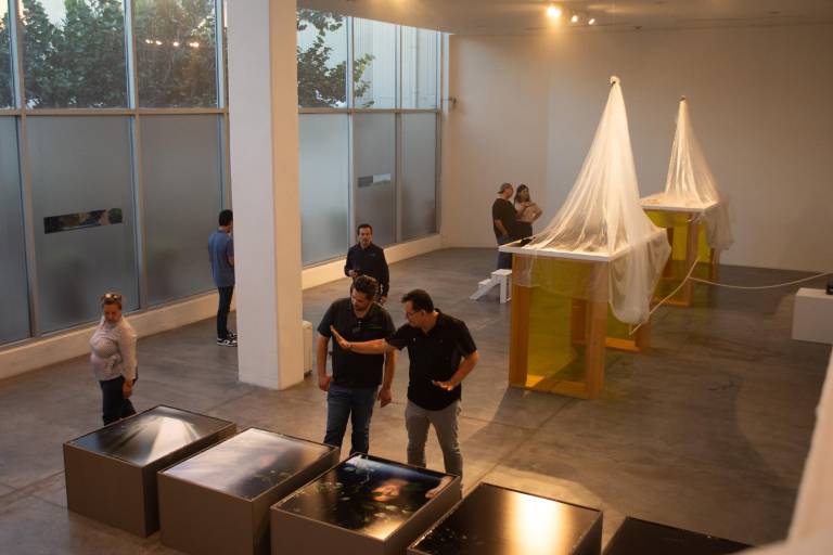 En la inauguración estuvieron presentes cuatro de los cinco integrantes del colectivo, quienes compartieron con el público reflexiones en torno a los procesos creativos y la visión conceptual que articula esta propuesta.